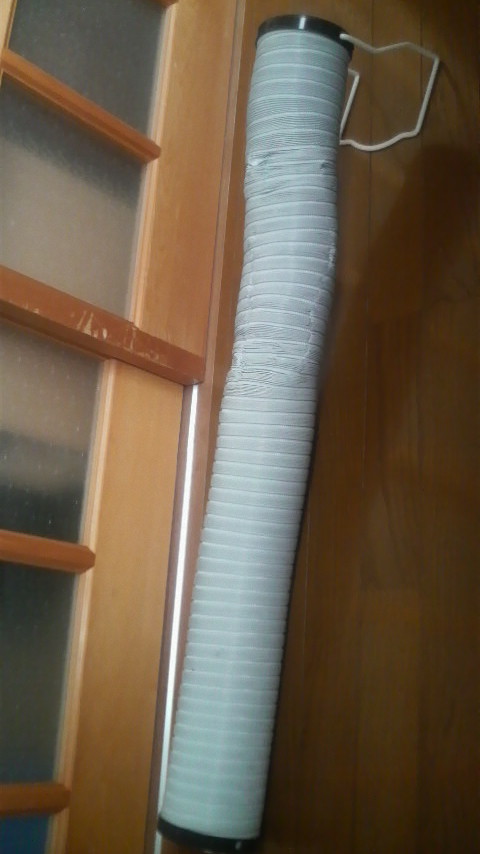 これの先端を温風ヒーターの送風口に置き、反対側をこたつに入れちゃいます。